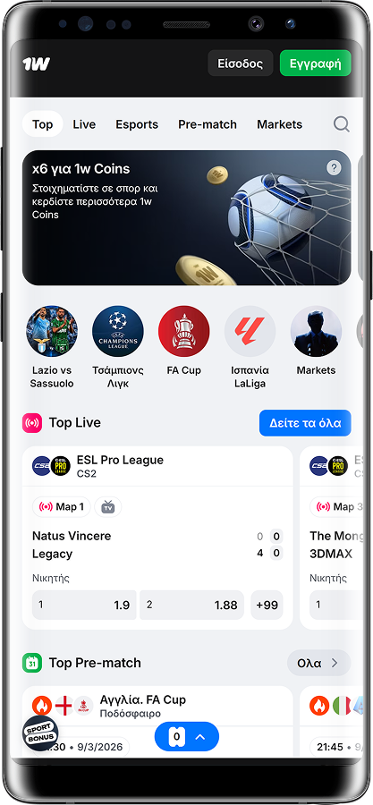 1w Εφαρμογή για κινητά για Αθλητικό Στοίχημα